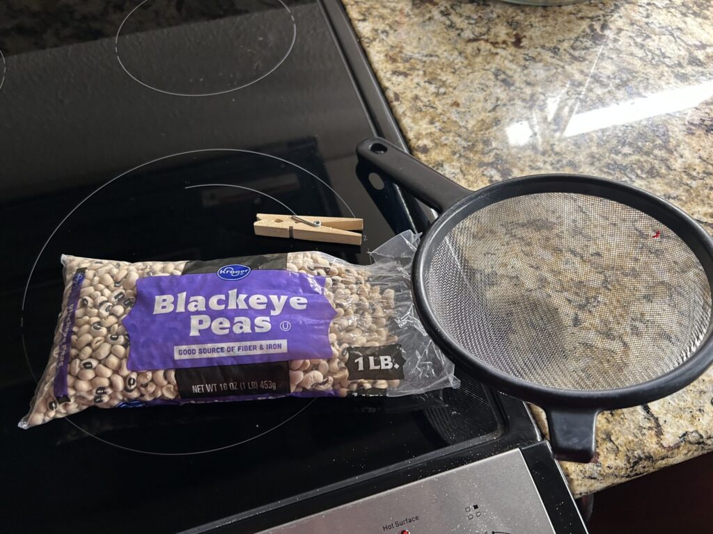 Must cook black-eyed peas for good luck on New Year’s Day. I have this much left over from last year, so I’ll use another cup this year. I’ll make my version of “Hoppin’ John,” because I think plain, black-eyed peas are pretty awful.