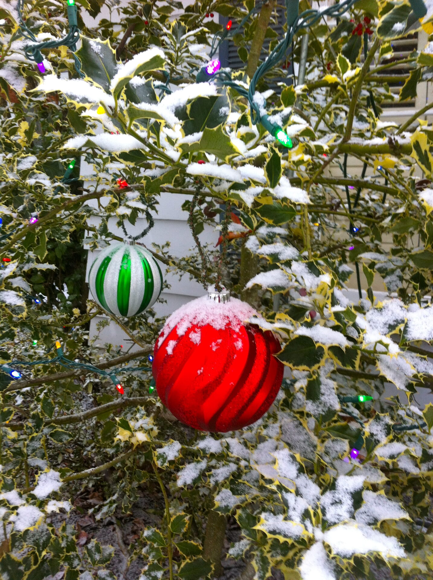 Woke up this beautiful December 6 morning, the Feast Day of St. Nicholas, to find snow beginning to fall on the holly when I stepped out on the porch to get the newspaper.