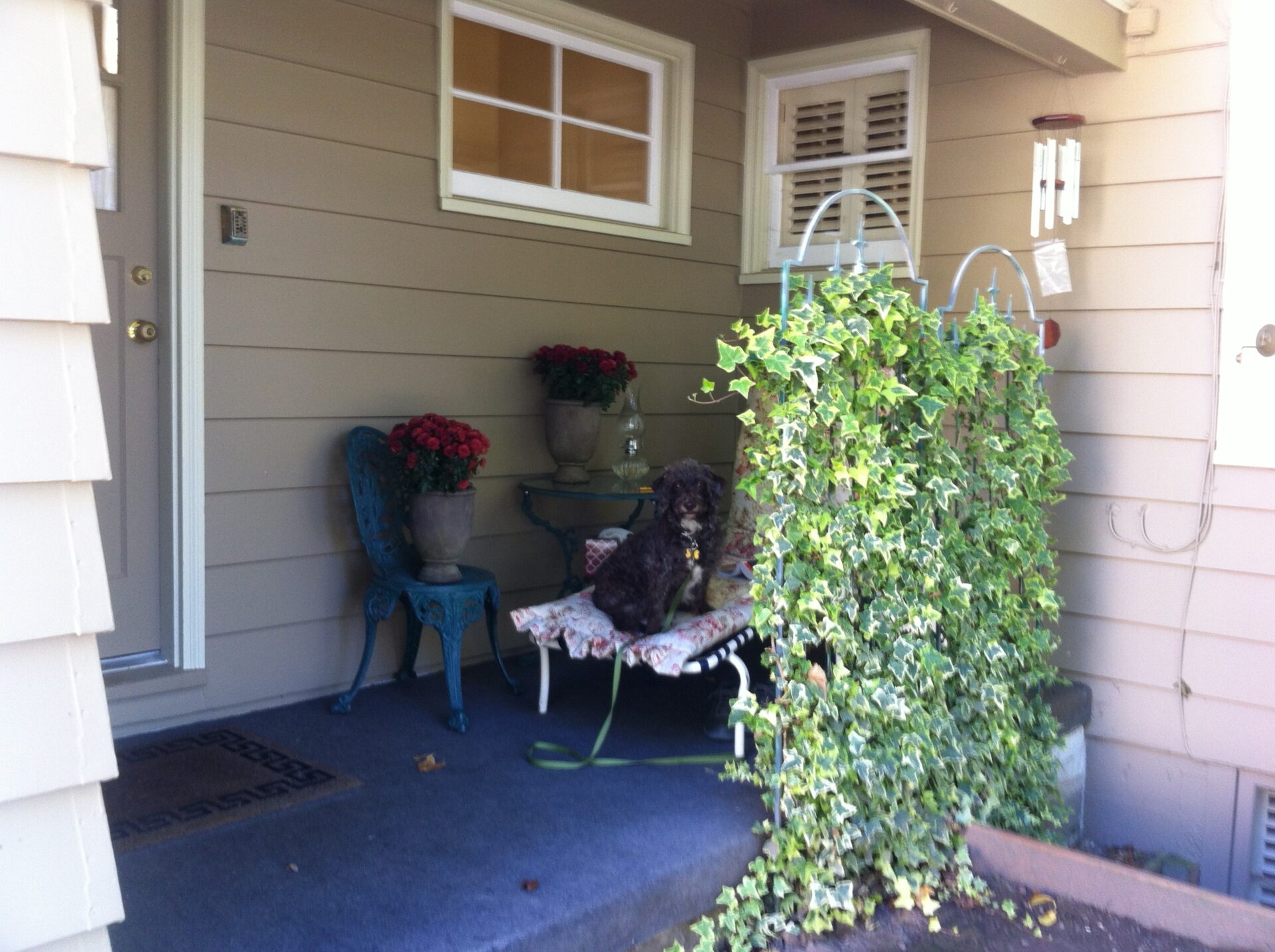 A favorite spot to read and have tea Posted on October 5, 2014 by 43jcu And it’s right out my kitchen door. Sweet. And there’s plenty of room for a dog and a woman on the chaise, once we snuggle in.
