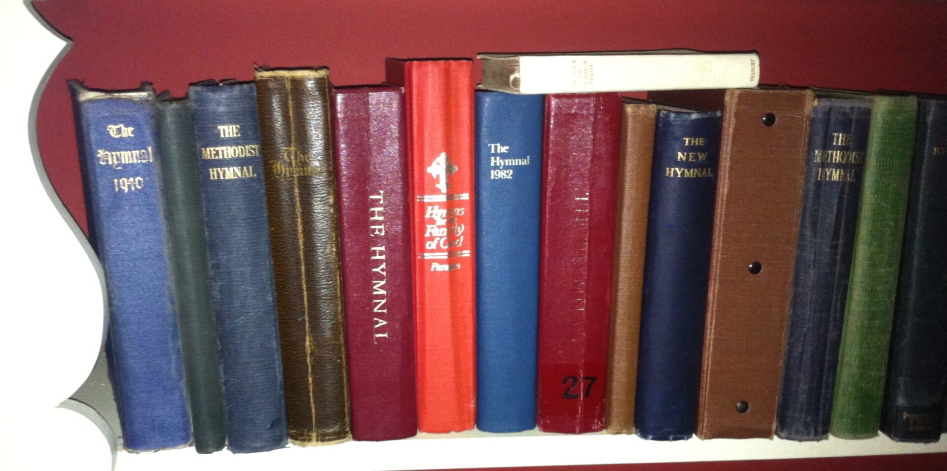 And this is where my heritage of hymns also automatically clicked in. Without even realizing what I was doing, I sang the entire first verse of “Oh, God, our Help in Ages Past.” Where that came from, I do not know. Actually I do know. It came from a lifetime of hymn singing. A shelf in my bookcase bears evidence.