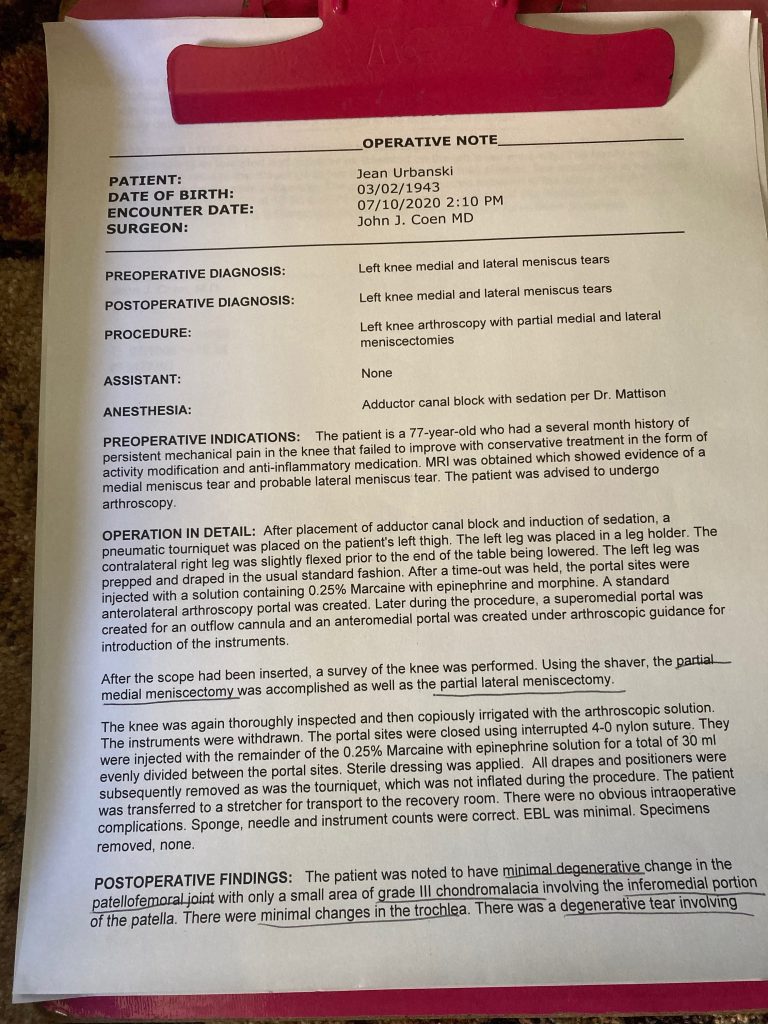I wasn’t awake to go over this with Dr. Coen when he recorded it. I’m trusting that it is accurate. The PA went over the entire thing with me and had me look at the photo album that was created during the procedure.